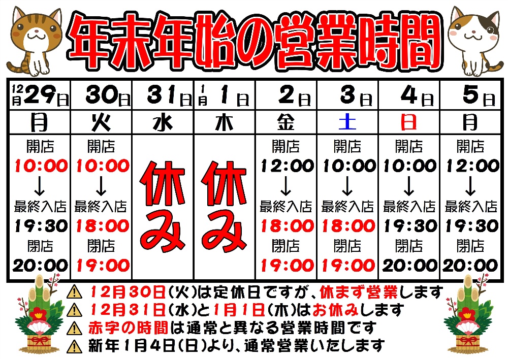 🐾火・水曜が祝日の場合は休まず営業します🐱